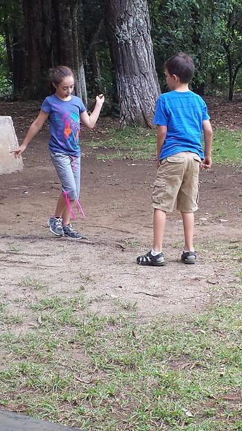 Jake and I playing Hopscotch with a metal bar we found and a rock after lunch.