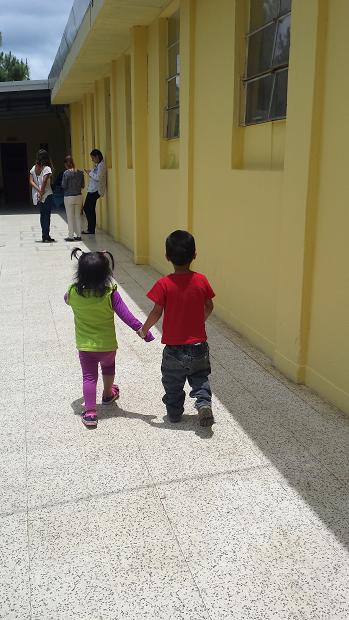 Anna Maria and Daniel holding hands walking out front to the playground. So cute!