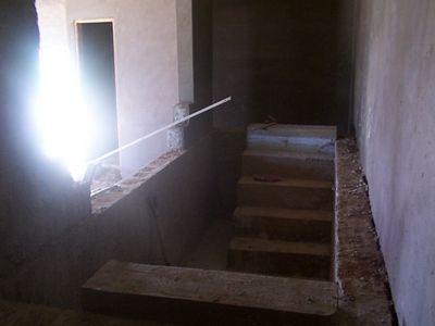 the interior walls were started. My job would be to finish laying the block on