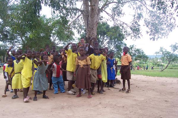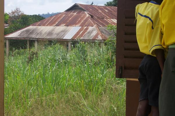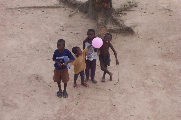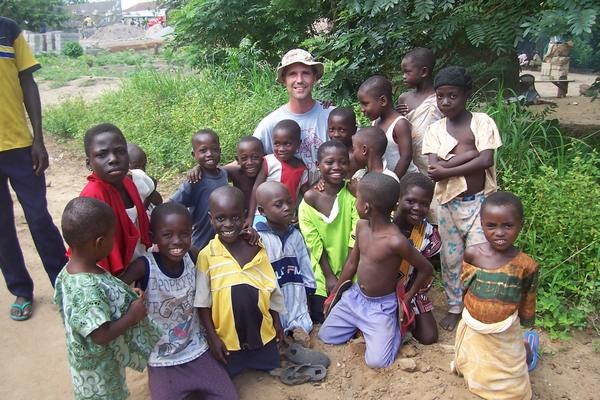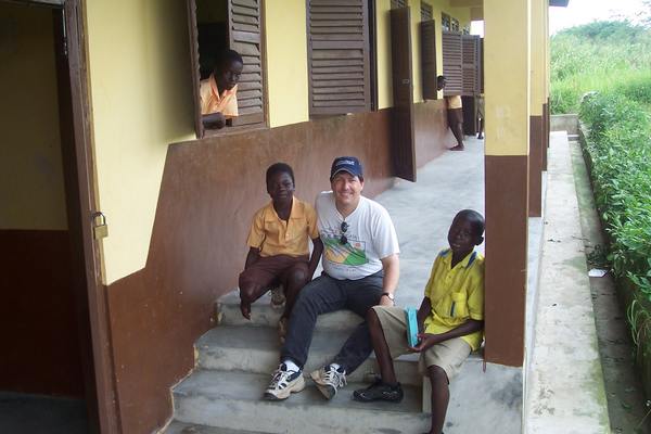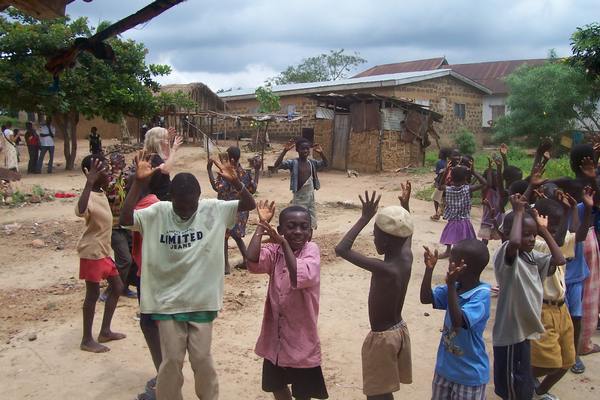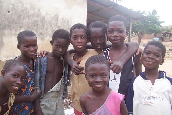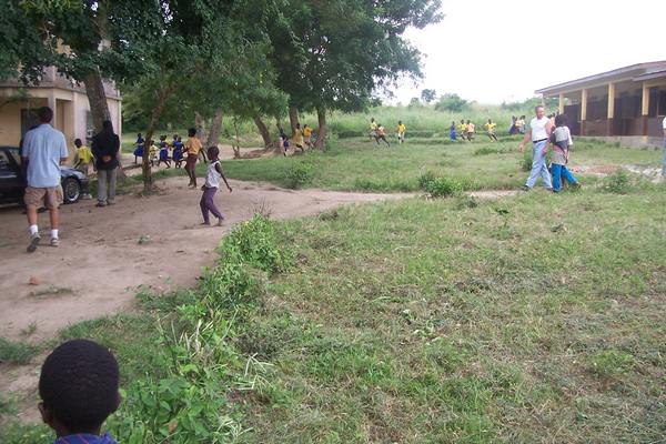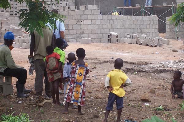 I was standing in an empty room on the second floor when these two boys spotted me and yelled "Obruni", which means "White Man" They don't see too many white people so most everywhere we went we would hear that. The kids would walk up and touch us. It was really funny to us, but we must have looked like aliens to them.