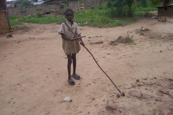 This stick with wheels was a common toy that I saw there. The kids would run through the village pushing it. They were probably imagining they were driving or racing, who knows.
