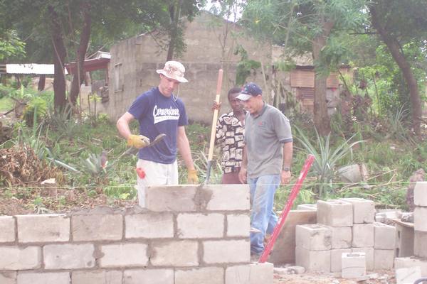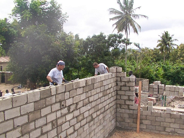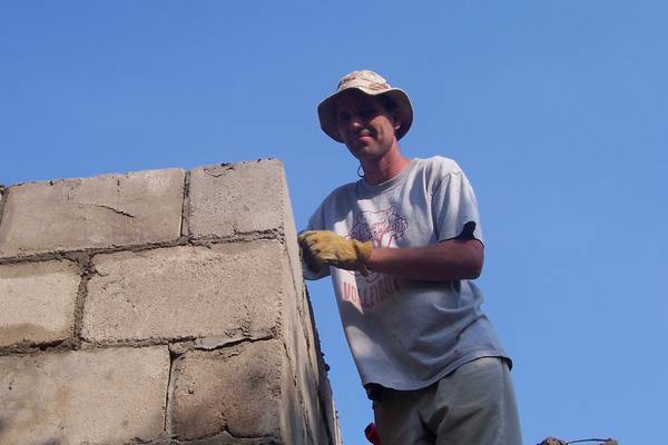 Friday was our last day of work, the carpenters had completed the trusses and much of the clean up was done, so while Ray, Brent and I finished the block work, some of the other guys goofed around with the kids.
