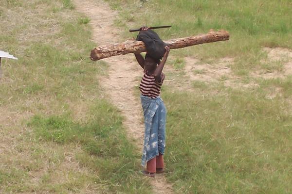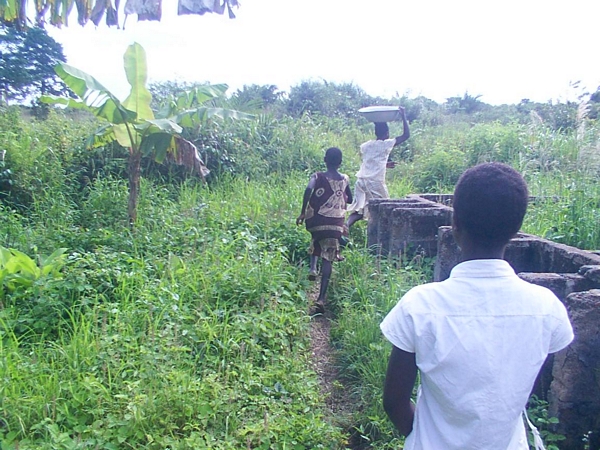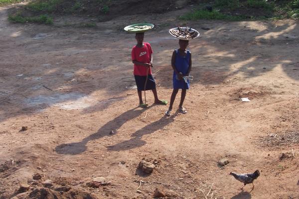 These were children passing through with their wares on their heads. They stopped to gaze upon the work.