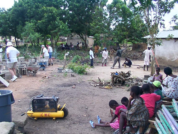 After a long layover in London, we headed south to Ghana, West Africa. We arrived late in the evening and drove to town in which we would be staying, of course somebody had hit a power pole and there was no power, our shipping container with all our tools was on site, so we pulled out a generator and powered up the whole complex. We slept in a little Monday morning to try to recover a little from the long travel.