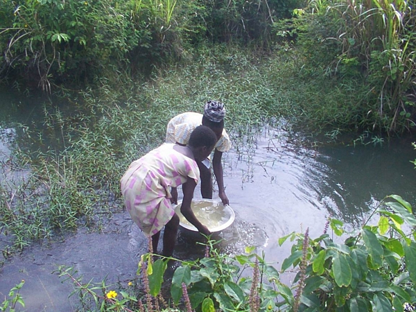 The young girls with the pot were headed down to the creek for some water and asked us to come along. Here they are gathering water the same way it's been done for generations.