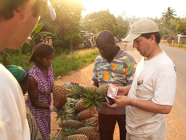 Here we are buying some pineapples on the way home. They were three for about a dollar.