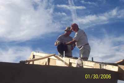 Kathy came up to the jobsite during the day and took a few pictures. I thought this one was interesting. We didn't notice until we were reviewing the pictures that there is a cross in the clouds above our heads.