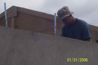 Monday morning we began work on the building. While the carpenters built trusses, I, along with two other masons began laying block for the interior walls.