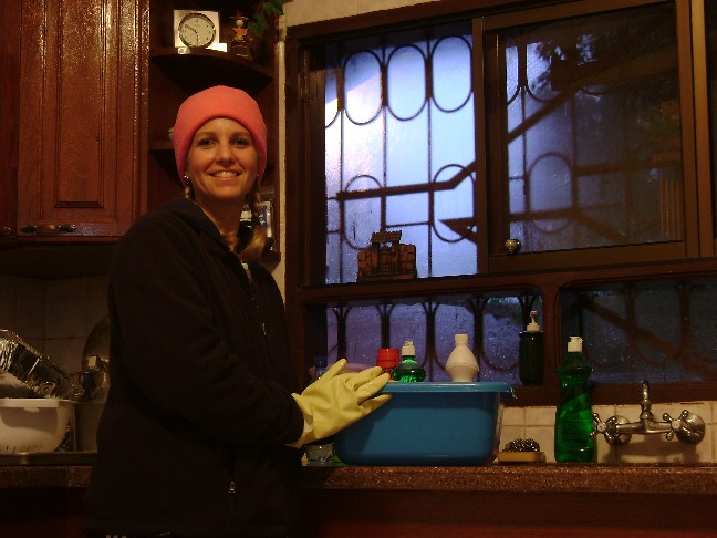 Typically the homes in Bolivia don't have heat. We just happened to be there on a few of the really cold days. From the way Debi is dressed here, you can see it was very cold in the house too.