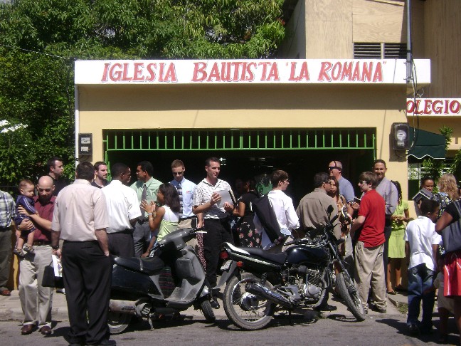 The 26th of January 2008, Kathy and I met up with JW and drove to Miami to meet the CWE construction team that would begin the construction of a Bible Institute in La Romana, the Dominican Republic. We stayed at the SCORE hotel, the same place we stayed while here in 2004. We arrived after dark Saturday night, so after a good night's rest we arose Sunday morning for some coffee and breakfast. Here are Brent, Steve, Ray and JW catching up over a few cups of coffee.