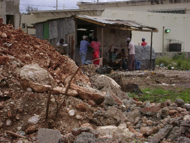 Across the street from our site was a little shack, we called it the chicken shack. The other construction workers in the area would line up there for lunch and each one would come out with a plate of chicken, beans, and rice.