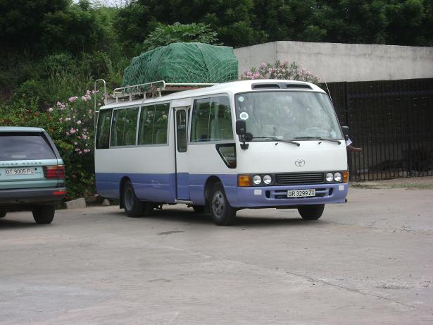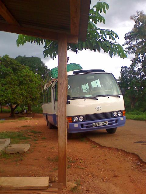 We had arranged for a bus to carry us to Togo. Here is the bus loaded with our baggage on the roof.