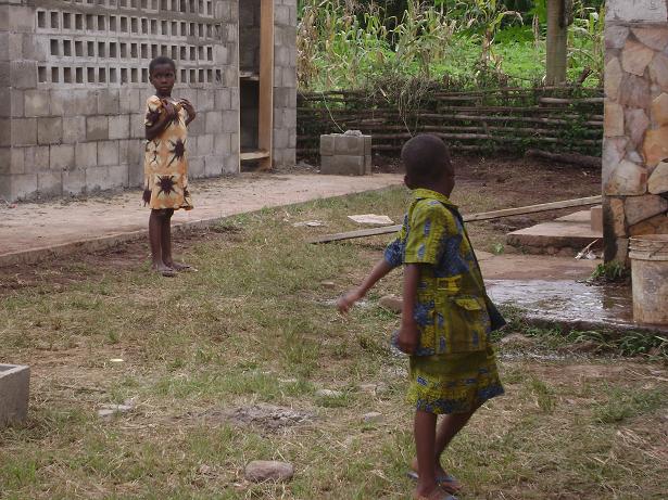 I think these girls lived in the house next door, they were selling whatever that was in the plastic tub, I think it was some sort of pastry. Look at the smile on the girl to the right.
