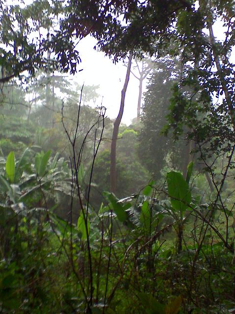We continued up the mountain, all the time the guide was showing us interesting things we wouldn't have noticed on our own. There was a plant that closed it's leaves when you touched it, and another that when put on a black mans arm, and then hit with the palm of a hand, would leave what looked like a painted impression of the plant on the arm. It didn't show too well on us Americans, the skin was to light in color. As we reached the top, this is what I saw.