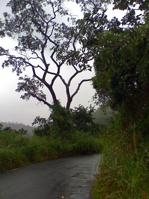As we came back out to the main road, it began to rain. We paid the guide a fair price and then Jeff and Ray hailed a cab, (motorcycle) and rode down the mountain, the remaining four of us decided we were going to walk, rain or shine.