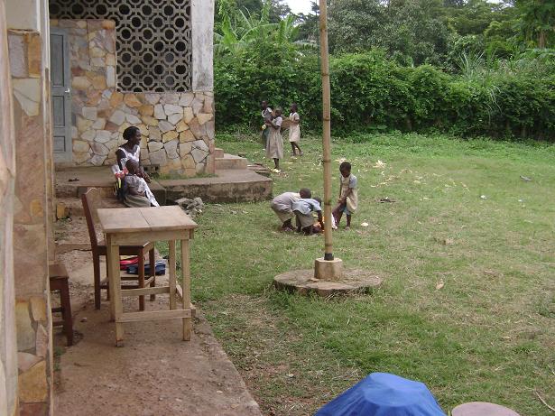 We came to the town of Nyive, just up the hill from the small river that separates the countries of Ghana and Togo. Here we had to have our passports stamped showing we left Ghana.