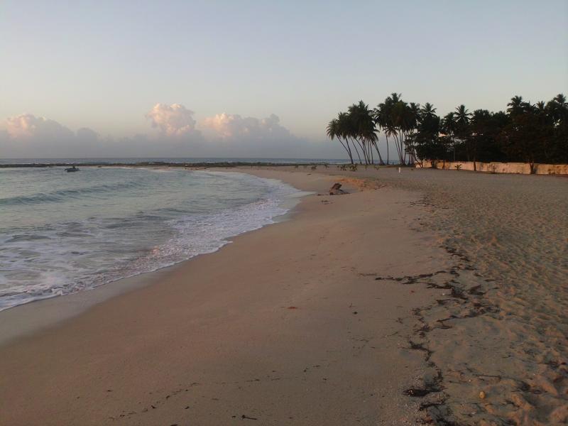 We had some time to kill that afternoon so several of us took a walk down the the beach at Juan Dolio. I know it's not the best photo in the world, but that's me waving.